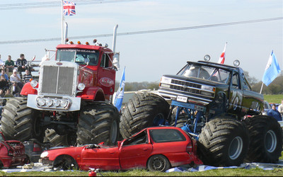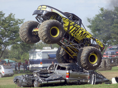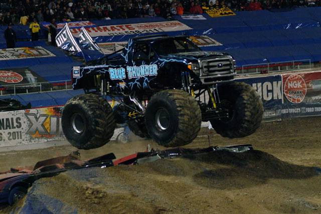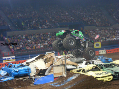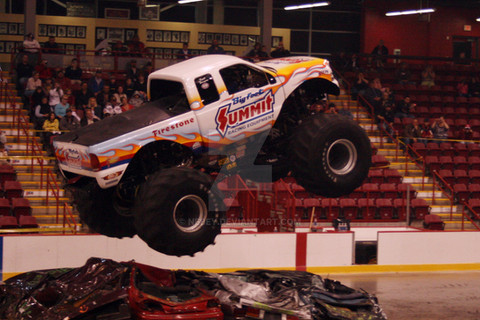 These were taken locally at the Monster Truck madness show. 5 monster trucks in the small junior hockey arena was quiet the experience.This truck didn't have any amazing jumps, but this initial attempt at waling across the cars was pretty good.