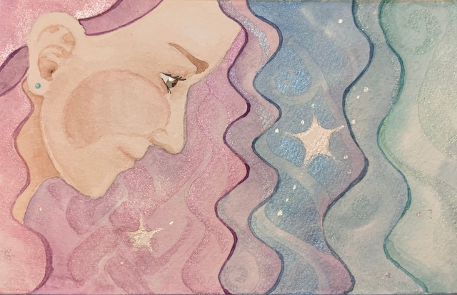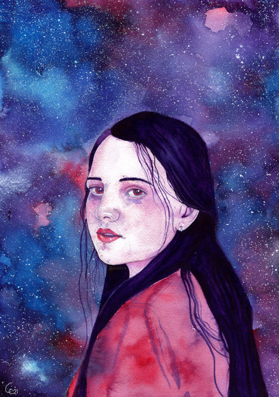 #akwarela #boy #colorful #cosmos #earth #face #galaxy #melancholy #nightsky #nostalgic #painting #sad #sky #stars #traditional #watercolor #watercolorpainting #watercolors #watercolour