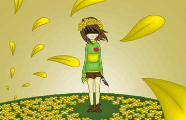 #chara #evil #goldenflower #knife #wiltedflower #stripedshirt #undertale #fallenchild #undertale_game #undertalefanart #necorodee1000