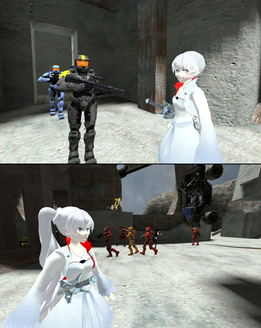 Weiss: This is the Blue team! Come out with your hands up or be destroyed. There's no point in fighting 'cause we have a tank that outguns your pathetic little Warthog. But if do you seek battle, that's fine by me. That is all.