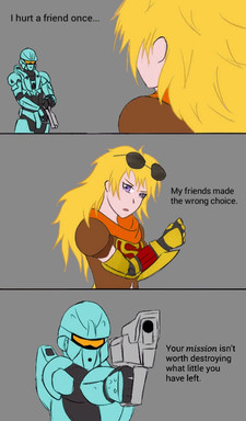 Weiss: Mr. Church, I am fully aware of what you're saying, but I have a strong reason to why I refuse to wear my armor. Yes, I am violating rules and regulation, but a soldier still have rights to have proper equipment.