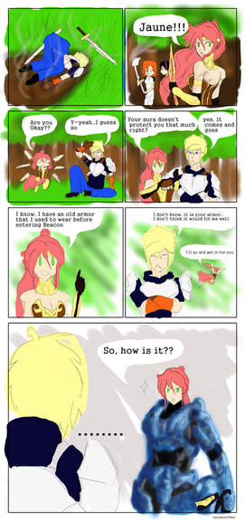 The tank stopped firing at last. Church sighed in great relief as he thought those two won't be able to fix it and they did. Now to turn back to the new recruit. He sees Weiss taking out each pieces of her armor out of her duffle bag. Helmet, vest, boots, etc. Church doesn't recognized this substitute armor before. Back at bootcamp, he was lectured to identify all types of body armor, but never this one.