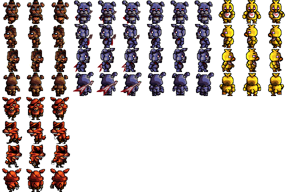 So I noticed there were no five nights at freddy's sprites for rpgmaker mv, so I decided to make my own.