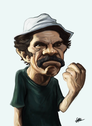 Genial, dibujo, genial tambien el breve resumen de la vida de ese maestro. Ni te imaginas cuan venerado es en mi remoto país, en las calles de Santiago puedes ver a algunos jovenes y no tan jovenes luciendo poleras con imagenes serigraficas de Don Ramon. Incluso una banda punk chilena llamada Los Mox, en un disco llamado VINO CALIENTE... TOMÓ Y SE FUE, el ultimo tema esta dedicado al maestro Ron Damon [link]
