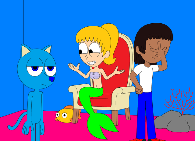 (Cartoon Character Final Week)After 20 years, Rocko, Heffer, and Filbert were stranded in space. The rocket attached to the house goes back to earth, and landed in the 21st century.