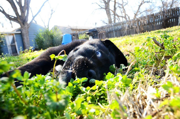 My doggie.She was sniffing the ground..then trying to eat it. and dig a bit. lol no idea.