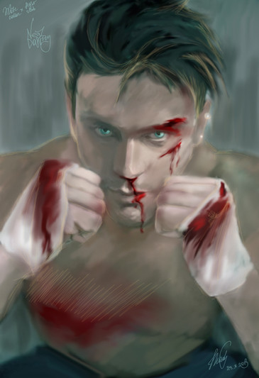 A little portrait to illustrate the aftermath of the Cyborg's attack...Just playing with textures and brushes.Ā
