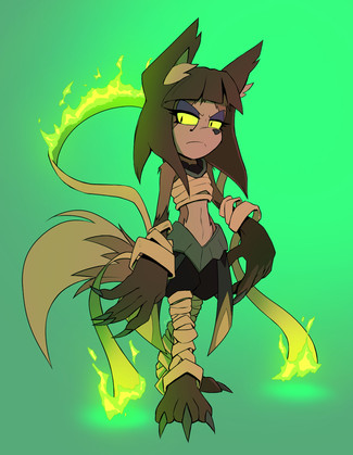 Je n'arrive pas à savoir exactement quoi, probablement un mix entre la pose, le sourcil droit et l'aura qui s'échappe de son oeil, mais elle a l'air de dissimuler derrière cette posture forte une profonde douleur/tristesse.