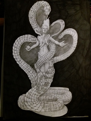 Most excellently done indeed. I quite like the way you have expressed this enigmatic feminine essence as the embodiment of the forbidden fruit tree herself. The way that luscious fruit dangles tauntingly from her dark locks and the way the serpent winds its way around her as if it too is compelled. I bet that the way you portray her, she is entirely capable of tricking Eve and letting the devil into paradise. Of course, i have no doubt that she ended up double crossing the devil in the end as well.