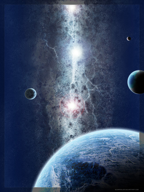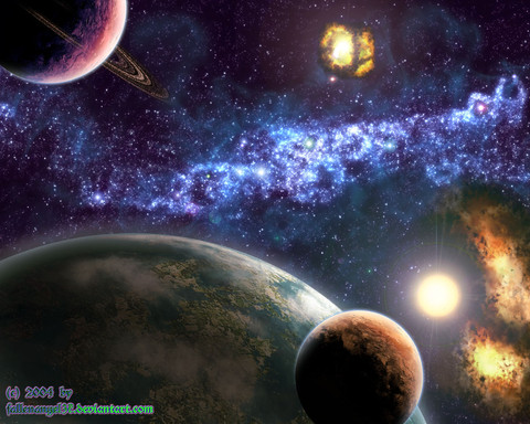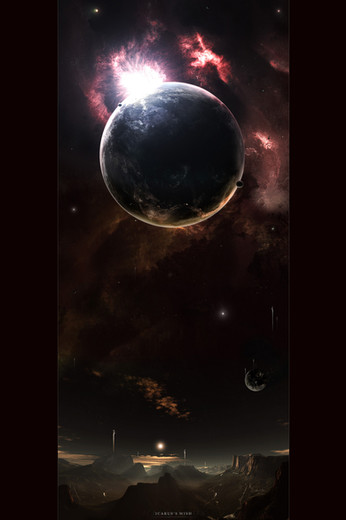 A spectacular solar system! Everything is positioned in balance, and the middle star and nebula look fantastic. Great job.