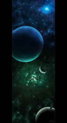 not bad at all, overall composition is good, planets are ok but the bottom left one is probably the best in this instance, however the big feeling across this through the centerpiece - nebula, is very well done indeed