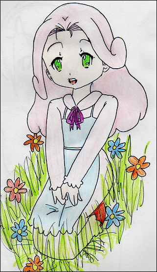 ^not properly drawn or colored.Though, I'm really happy with how it turned out~ *hasn't colored anything for years* Pretty background, yes? My scanner destroyed it, though. .-.