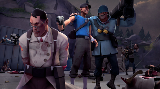 ...It worked. Medic couldn't measure how happy and excited he was to see them again. However, upon taking a closer look, the revived BLU team had no soul. Their eyes were blank. The doctor in his grief had brought them back as zombies, cursed to walk the earth half dead, but half living - a very sad existence indeed. And every night, Medic was forced to hear their voices call out to him like a siren's song, begging him to join them and share their eternal suffering. It was like a living nightmare, everything he did, even sleep, was torture.