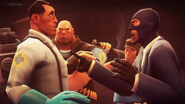 Although, if Medic is having a morbid wet dream (we know how blood and the shedding thereof turns him on), I would expect Sniper to be in it. The Heavy is a given, Spy, yes... but Scout? Bit too young, annoying voice, not his type.