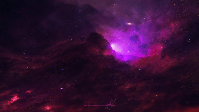 So many levels of details, each part of the picture tells a whole story. This is not just a nebula and some stars, this piece is really different. It would be awesome if you made closeup art from the different parts (the purple cloud nebula, the red eagle-like nebula, the lightning effects)