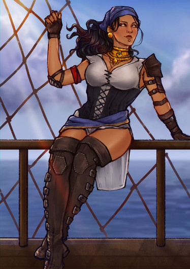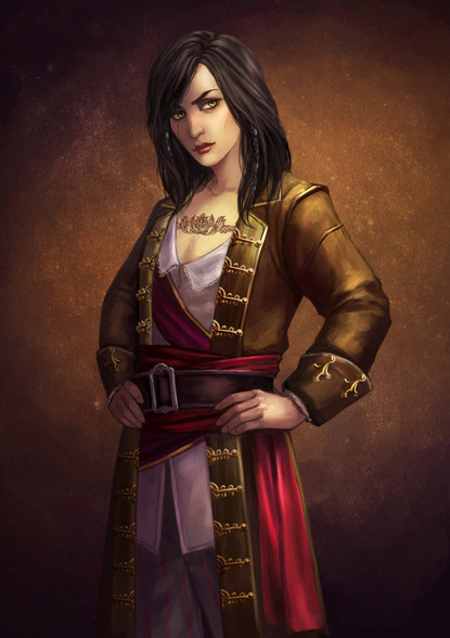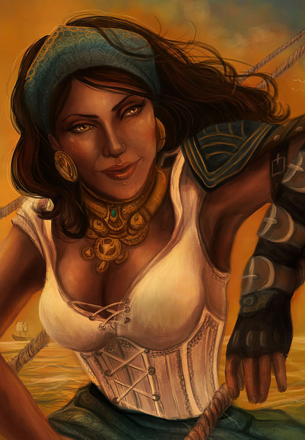 i love this painting!!! She looks like the pirate captain who truly loves being out to sea <3 she's so happy and content here. i feel like i've been waiting to see this side of her forever. Isabela desperately needed some contentment after all she went though in the games and comics.Β