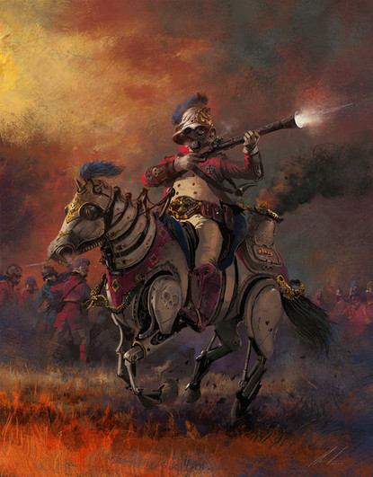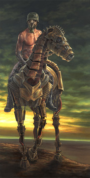 This really does bring to mind a sense of contemplation in regards to the focus of the piece, the rider who is pulling the reigns on his mechanical horse to a halt as they look out towards the distance - maybe something of interest or maybe just looking at the sights that we can't see.