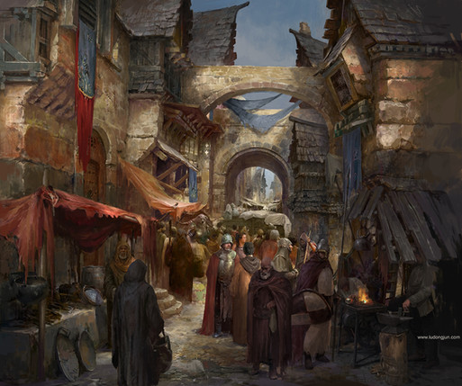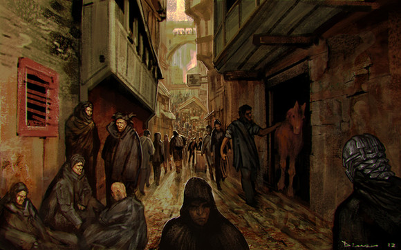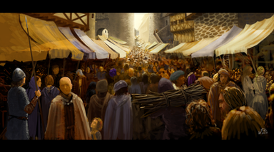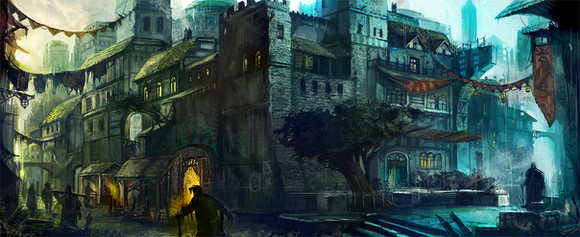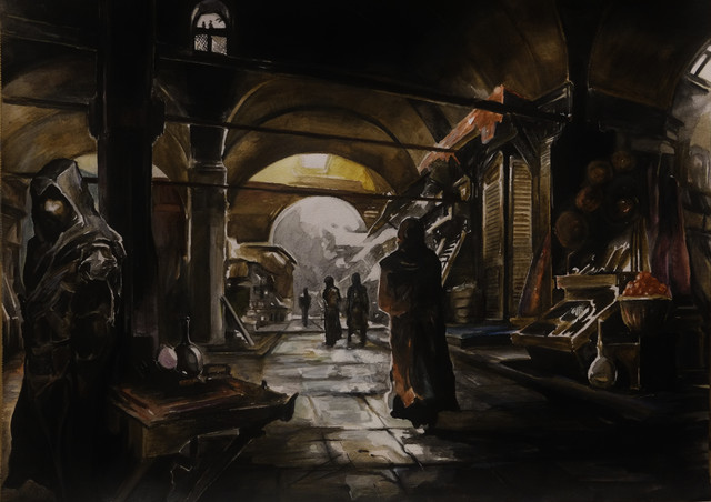 Now this is gorgeous, is it not? Great composition, cool perspective and angle, lovely colour palette and though in parts being painted rather roughly, it offers a great amount of details to discover. The scenery looks very byzantine I think. I really like this painting a lot, excellent job!