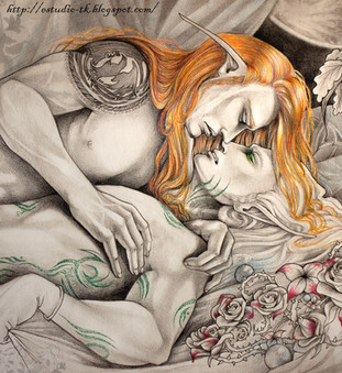 "Kalervo looked around, pulling down his robe's cuffs, then glanced furtively at the paladin. He wore a black tabard with a silver sun embroided in the chest, his eyes were covered by a shining, golden glow. He had scars. And exuded an almost venerable aura that makes him look down sometimes. The big elf had shocked him. It wasn't fear, really. Was like if, suddenly, he had found himself in front of his own father. "-Kalervo, meeting Ahti for the first time. Description by