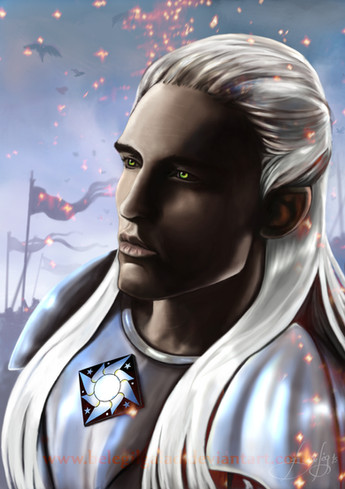 "Kalervo looked around, pulling down his robe's cuffs, then glanced furtively at the paladin. He wore a black tabard with a silver sun embroided in the chest, his eyes were covered by a shining, golden glow. He had scars. And exuded an almost venerable aura that makes him look down sometimes. The big elf had shocked him. It wasn't fear, really. Was like if, suddenly, he had found himself in front of his own father. "