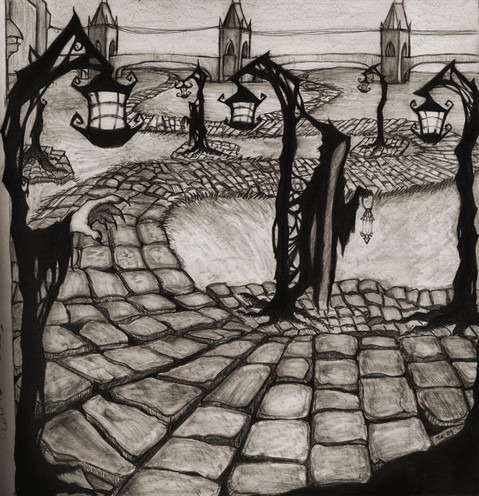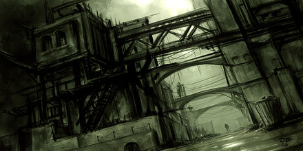 That's good. It has my eyes following the streets and trying to figure out which way I should go. I like the color used for it, and the shadowy feel to it. Good work.