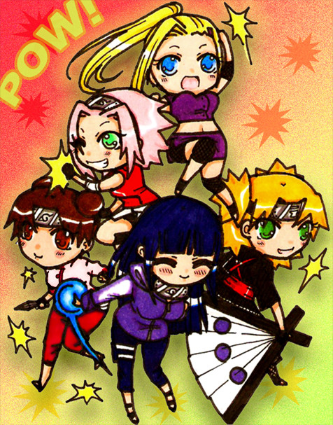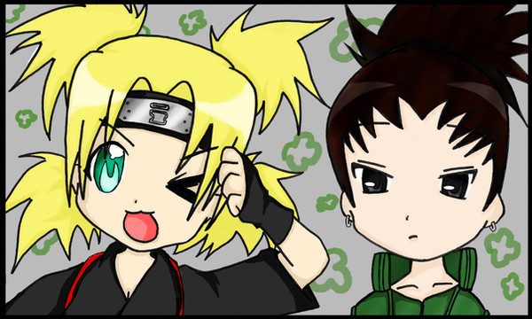My favorite character from the manga "Naruto" X3 I'm not too happy with how the hair came out, but it's all cute. The 2 guys in the background are Chouji and Shikamaru.Related content