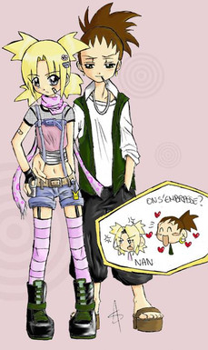 Shikamaru looks so adorable! And Ino too! *Is a big InoShika fan* X3;; Very cute, bouncy, happy picture.