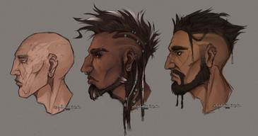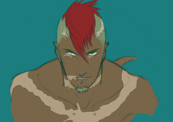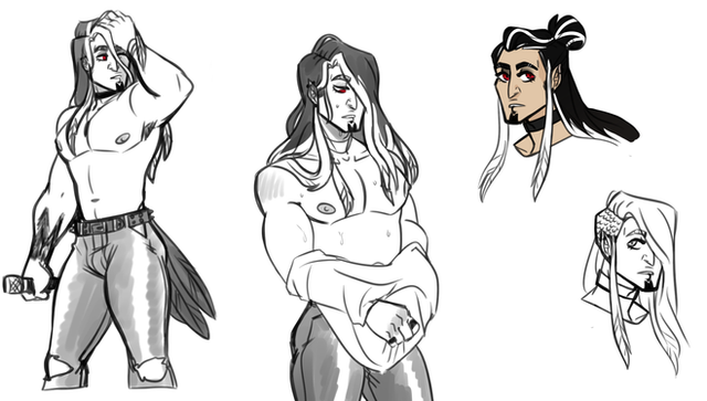 warmup doodles of veloci i decided to colourfeaturing a potential idea for his raptor form based on bearded vultures because they're cool as hell, a veloci that actually looks happy for a change and not like he's constantly Judging You, a new idea for a hairstyle, and veloci eating a fried egg with rice