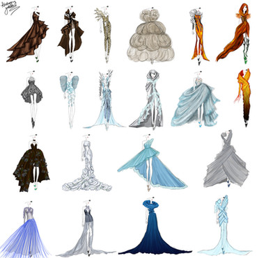 This is a school project: we have to study water in each of its forms! And then design a collection.There are just sketches, I should choose just one of these water-forms and then design outfits with the same style... But I can't decide, I like them all! Can you help me? What is your favourite? <3