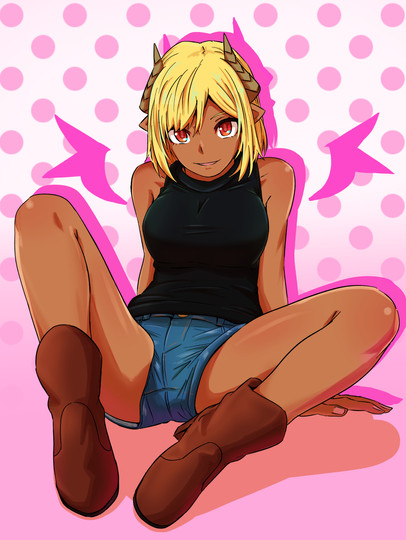 #blonde #darkskin #demongirl #original #originalcharacter #hornsgirl