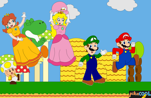 Daisy, Peach and Toadette on some Yoshis.I gave Daisy a little tan like she used to have, makes her a little less of a Peach clone.