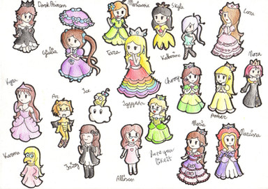 These Princesses look very cute! My faves are Zelda, the ruler of Hyrule, Rosalina, Ruler of.... erm.... Space!... And even Luigi dressed as peach. Luigi dressed as Princess Peach is totally funny!!! It reminds me of when Luigi dressed up like Peach in Mario and Luigi SuperStar Saga.