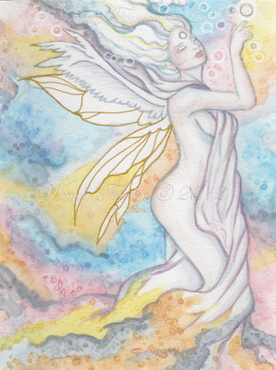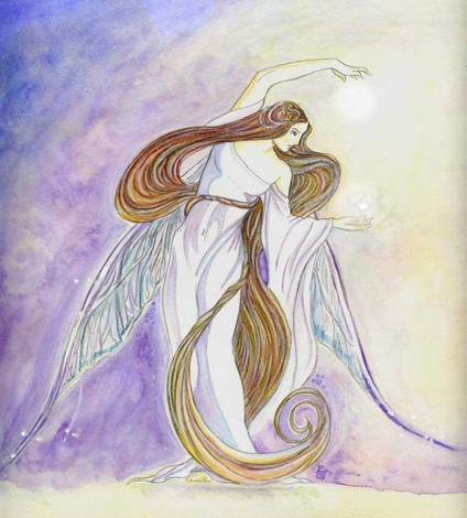 You say that this is inspired by the Old Masters, and I can well believe it. This is truly wonderful work, and it's quite a rare treat to find such traditionalism in art nowadays. I'm a fan already! I hope and wonder if your other work may be in the same vein as this. The use of watercolours, as well as the choice of subject matter, immediately reminds me of Alan Lee and Brian Fraud, two of my favourite artists. This is too my medium of choice. I love the mixtures of colours that you've chosen here. The soft, lush purples and lilacs give this a calm, enchanting, ethereal and whimsical look that I always find most pleasing in art. It's the greatest form of escapism, at least to me. She also looks beautifully coy and other-worldly, in a way that befits her seperation from out lowly world. I particularly like the long strands of her flowing hair.