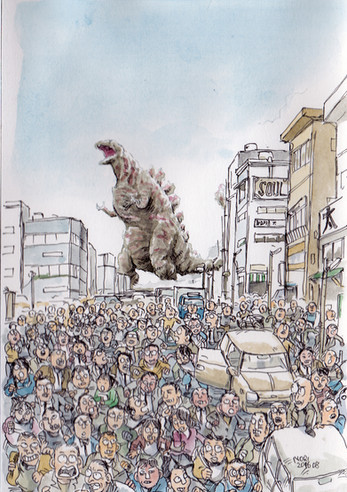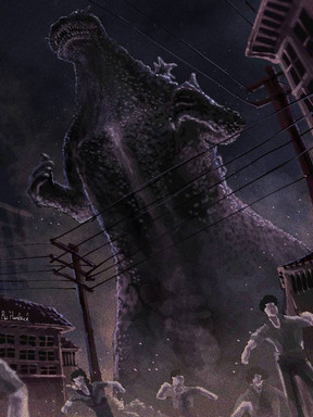 Wonderful work, the lighting especially seems to capture the wild, frenetic nature of the citizens during a classic Godzilla attack.