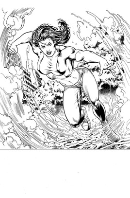 Absolutely gorgeous and very realistic!! I love her pose showing strength, beauty, and boldness. The shading to show the curves in her body and muscles is remarkable. Her face and hair detail is beautifully done and the eyes have depth showing detail to the realism of this picture
