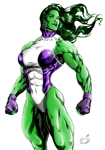 This She-Hulk is awesome. Her face kind of reminds me of UFC fighter Ronda Rousey.