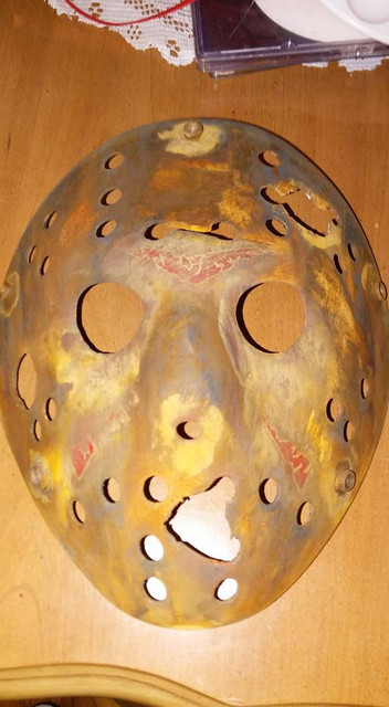 This is a concept I created what if Jason truly was Kane Hodder (who played Jason 7-X) but in a part 3 setting.. So the mask would be a part 3 mask, with part 7 and part 3 chevrons, with the part 7 mask damage.. I custom painted it with some scars at the top with look great.This Jason would be Kane Hodder shirtless wearing, the part 2 coveralls and possibly a pitch fork as a weapon, with his mask off he looks like kane but with deformities and some blood close to the part 7 lower left damage.