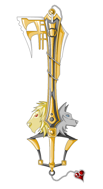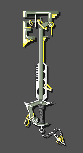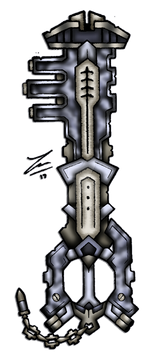 Another keyblade I designed.It is called "Mounting Key". The clockwork engine embedded in this keyblade can speed up the power of a stroke. To activate the engine, you have to pull the clutch lever that's installed at the handle.