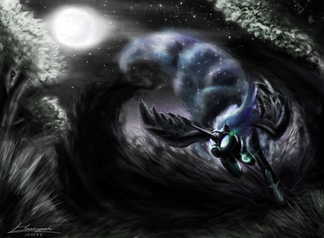Well Il'l be damned. You actually managed to make nightmare moon genuinely scary despite how campy she was in episode. Not bad, not bad at all.