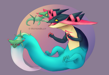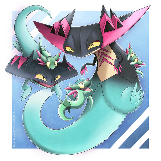 Dragapult with their projectile childrenThis line is probably my favorite from the new game! Also apologies for not being around as much, I took a small break to make some traditional work (which I'm trying to figure out how to upload those!)