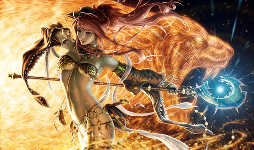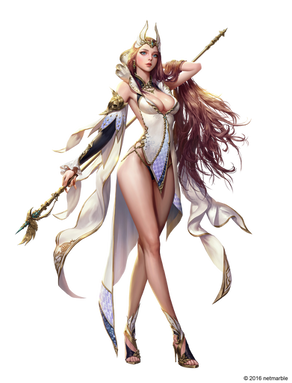I'm so in love with her hair! *u* She's gorgeous! And her weapon (a staff?) is really cool too. I think you did a fantastic job on her.
