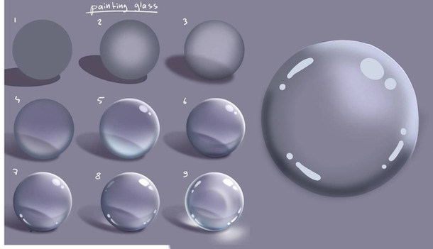 An old step-by-step tutorial on rendering a waterdrop. Compare to an opaque round object. I hope somebody finds it useful.This assumes a uniform environment with no reflections.
