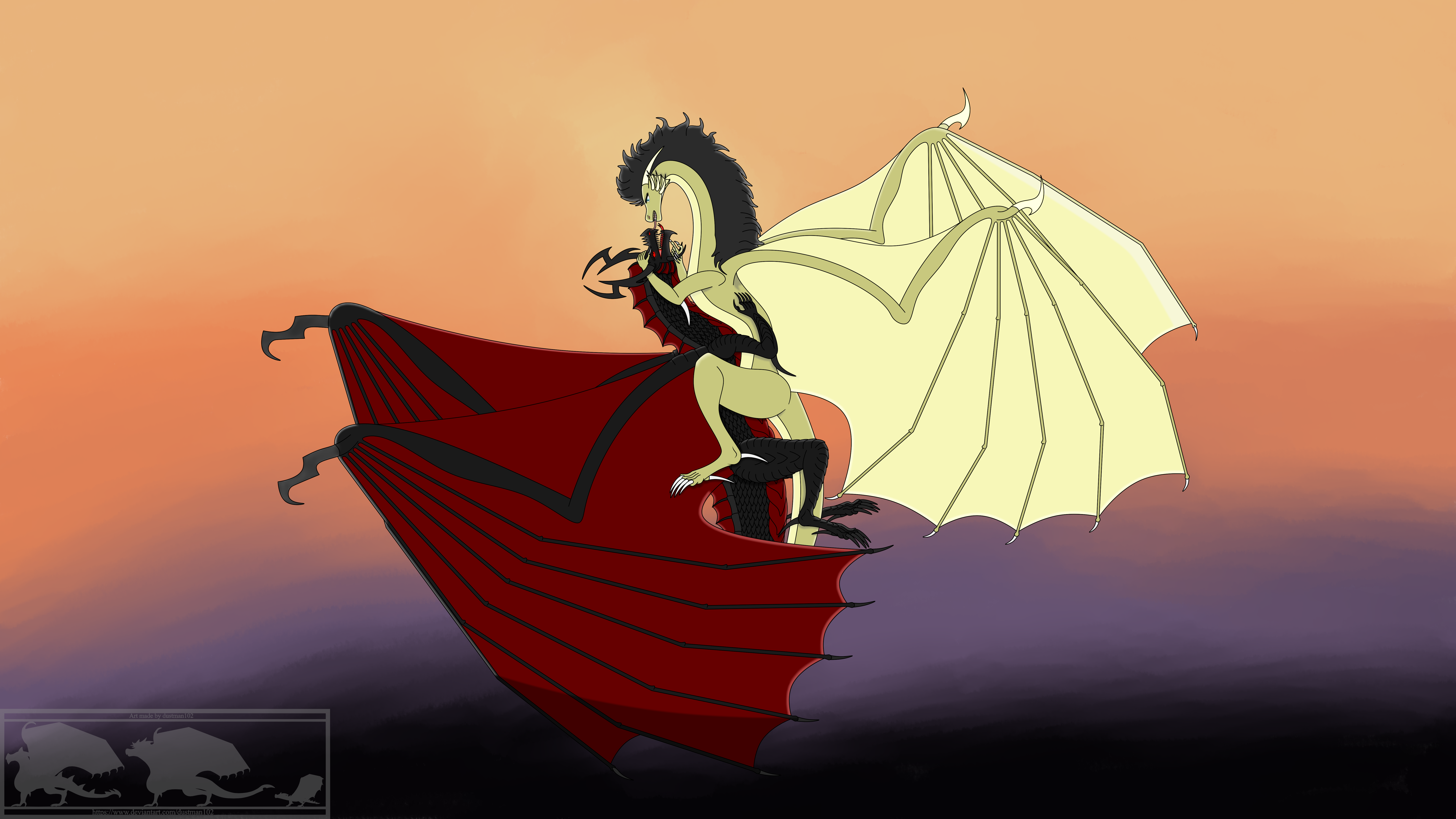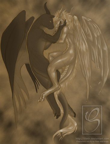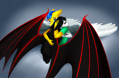 I liked the way it's shown, that are hugging and also the wings they're great, but, I would like that I coud see their faces, or something ^^', well, anyway, at least I can see the wings and the legs of the gray gargoyle, although it would be interesting to see them touching their hair, cuz that's the way gargoyles "kiss", at least originally