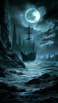 #scenery #sea #cliff #cliffs #digitalart #landscapescenery #moonlight #ocean #painting #pirateship #ship #water #cliffswater
