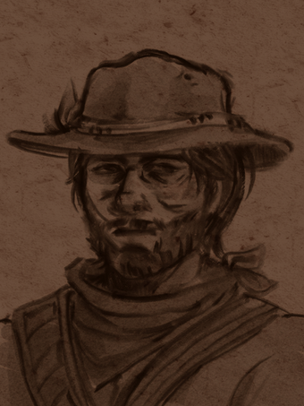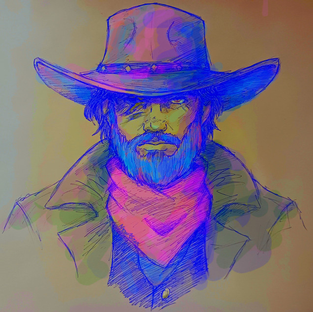 #cowboy #western #sketch #portrait #doodle #beard #cowboyhat #dark #grayscale #ink #male #olderman #pen #penandink #scar #scarring #semirealistic #serious #shading #shadow #traditionalart #oldercharacter