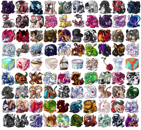 A few dozen of the icons used inΒ Flight Rising . Half of these were drawn by and half by meRelated content