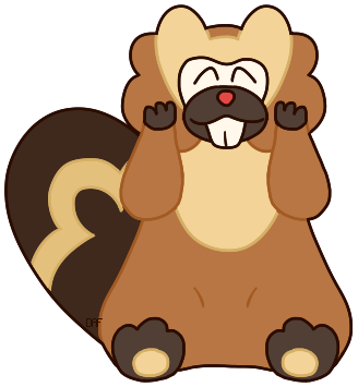 Poppy is a very cheerful and peppy bidoof who's hobbies include hopping, screaming, and rolling around like a ball. He also likes to sit on people's laps and often has to be fenced off so he doesn't crawl on people while they are eating