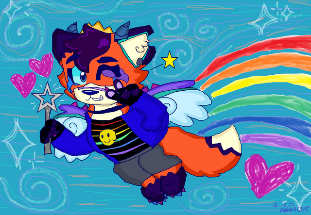 #fox #rainbow #fursona #fluffy #digitalart #originalcharacter #sky #magic #furry #2000s #mspaint #paint #scene #scenecore #sparkledog #sparklecat #sparklefox #2010s #oldinternet