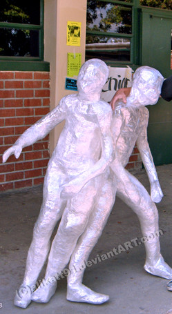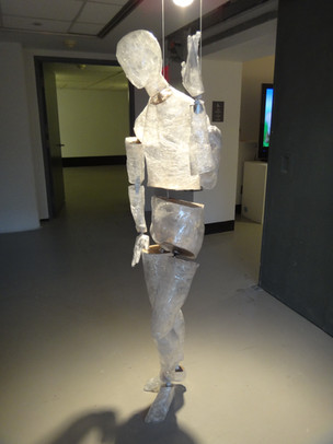 This is my piece that I entered into a local museum's art exhibition. It is made entirely out of tape and glitter (and a canvas as the base). This depicts a person struggling to get out of the canvas as it is trying to suck it back in.I apologize for my crude attempt at blurring out the other pieces that are not mine.
