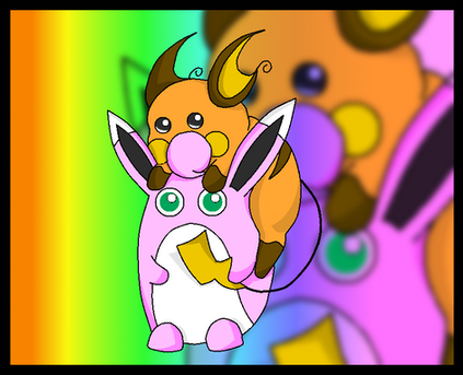 These are two of PokeManiac Neo's Pokemon, Raia the Raichu and Speedy the Slowpoke. Since Neo's other two Pokemon (Gizmo the Meowth and Tod the Vulpix) are always getting into spats, Raia and Speedy like to enjoy each others easy-going company. They also make a great team in double battles.Raia, Speedy (c)